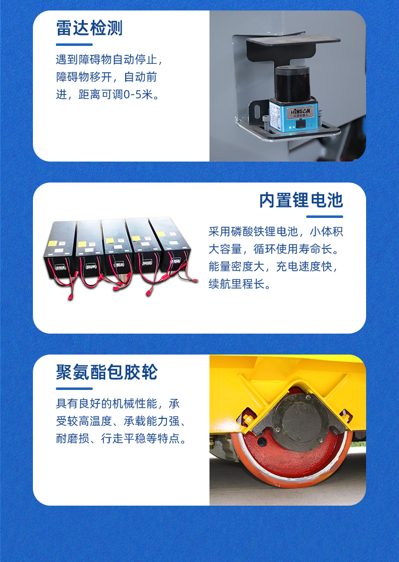 描   述: AGV搬運(yùn)車指的是無軌車自動(dòng)行駛的搬運(yùn)車型,是一種電磁或光學(xué)自動(dòng)引導(dǎo)運(yùn)輸車。本臺(tái)AGV搬運(yùn)車載重10噸,臺(tái)面長3米、寬2米、高0.6米,車體上裝有電磁光學(xué)自動(dòng)引導(dǎo)裝置,能夠在設(shè)定的路線上自動(dòng)行駛,光電感應(yīng)自動(dòng)避開障礙物,鋰電池供電,壽命長,充電快、續(xù)航里程長;采用聚氨酯包膠輪,耐磨損、行走平穩(wěn)。在工業(yè)應(yīng)用中不需要人員駕駛,實(shí)現(xiàn)全自動(dòng)化。在制造、制藥,物流以及各大重工業(yè)等行業(yè)中大顯身手!