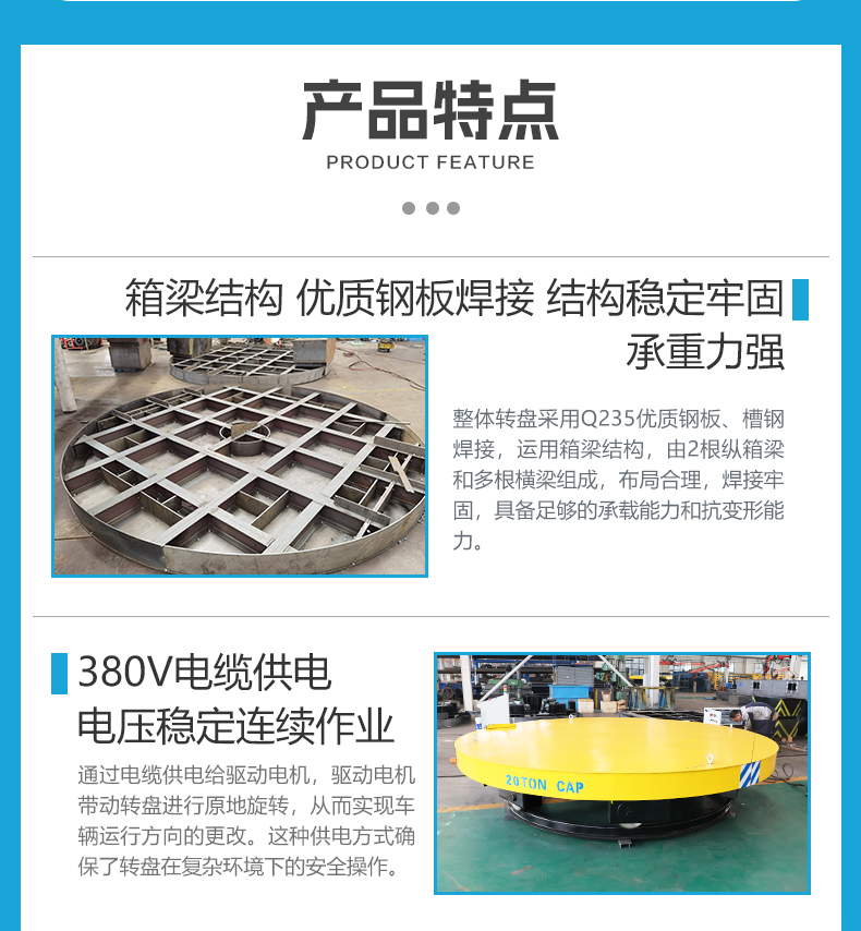 描   述: 客戶訂購的8臺(tái)電動(dòng)轉(zhuǎn)盤***批4臺(tái)交付前運(yùn)行測(cè)試,直徑3.5米超大平臺(tái)整車箱梁式車架結(jié)構(gòu),高強(qiáng)度鋼板精密焊接成型,可達(dá)20噸額定載荷,錐形箱支撐穩(wěn)定牢固。轉(zhuǎn)盤具有手動(dòng)操作與自動(dòng)控制兩種模式,雙重限位開關(guān)設(shè)置兩點(diǎn)位自動(dòng)停靠,180°雙向旋轉(zhuǎn),,定位精度正負(fù)3mm,雙工位一鍵切換響應(yīng)快精度高??科椒€(wěn),外接380V動(dòng)力系統(tǒng),支持24小時(shí)連續(xù)高強(qiáng)度作業(yè)!