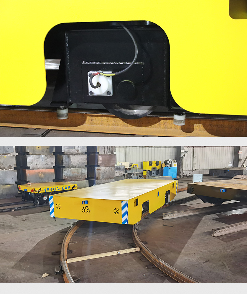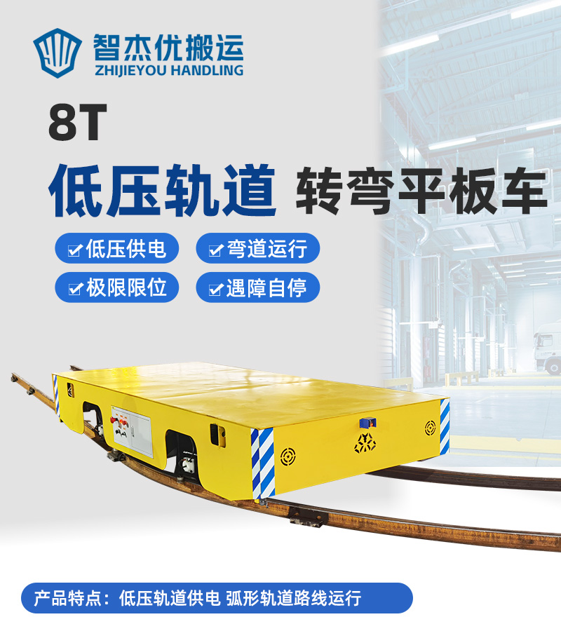 智杰優(yōu)搬運(yùn)為鋼材加工行業(yè)定制的低壓軌道供電平板轉(zhuǎn)運(yùn)車,主要用于車間內(nèi)生產(chǎn)線鋼材的轉(zhuǎn)運(yùn),冶金行業(yè)半成品和成品的運(yùn)輸以及周轉(zhuǎn),額定載荷8噸,采用低壓軌道供電方式,結(jié)合現(xiàn)場作業(yè)需求運(yùn)行于弧形軌道上,行走輪經(jīng)絕緣處理,配備導(dǎo)向輪控制車輛轉(zhuǎn)彎,轉(zhuǎn)彎半徑4.5米,可搭載物料平穩(wěn)運(yùn)行,安全往返運(yùn)輸,兩端設(shè)有極限限位開關(guān),防止小車沖出軌道,光電檢測自動避障,急停開關(guān)應(yīng)對突發(fā)情況,降低作業(yè)風(fēng)險,提升生產(chǎn)靈活性。