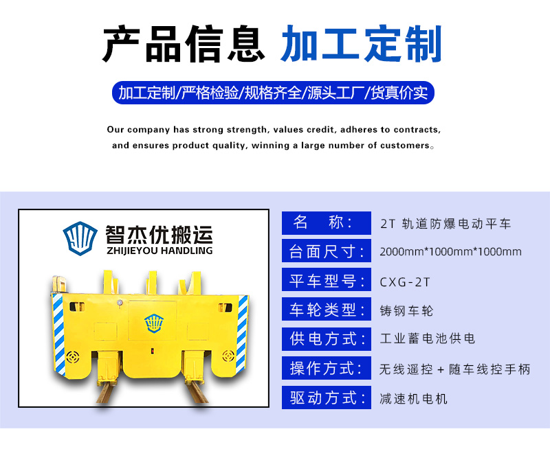 防爆拖纜電動(dòng)平車(chē)搬運(yùn)車(chē),配件的選用均符合防爆等級(jí)相關(guān)標(biāo)準(zhǔn),防爆型蓄電池作為電源,防爆電機(jī)減速機(jī)作為驅(qū)動(dòng)系統(tǒng),由手持式操作手柄(線控或遙控)實(shí)現(xiàn)平車(chē)的啟動(dòng)、停止、前進(jìn)、后退、左移、右移、轉(zhuǎn)彎等功能。