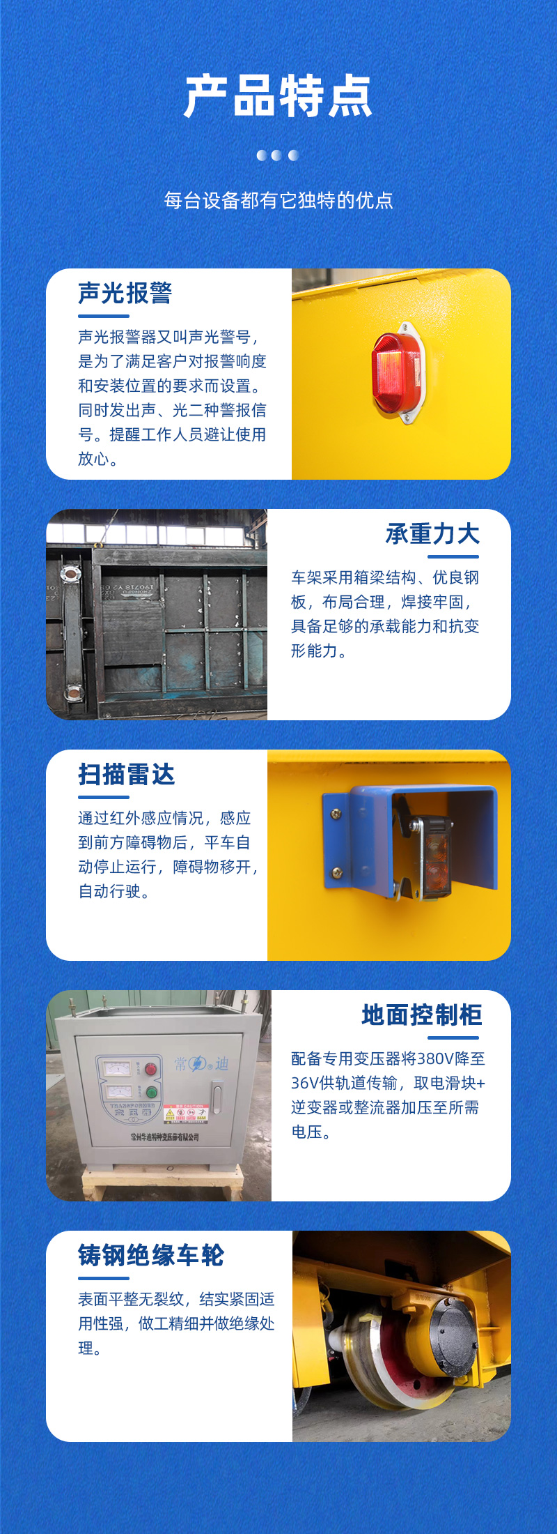 公司保障:電動(dòng)平車、軌道平車的承重安全系數(shù)不低于60%