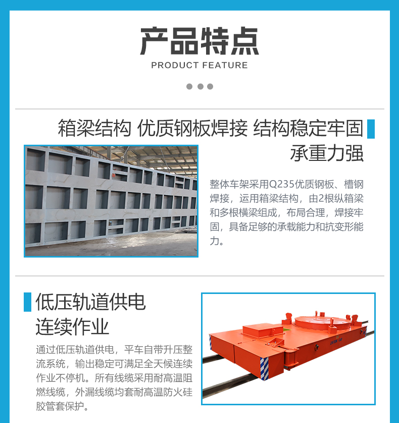 公司保障:電動(dòng)平車、軌道平車的承重安全系數(shù)不低于60%