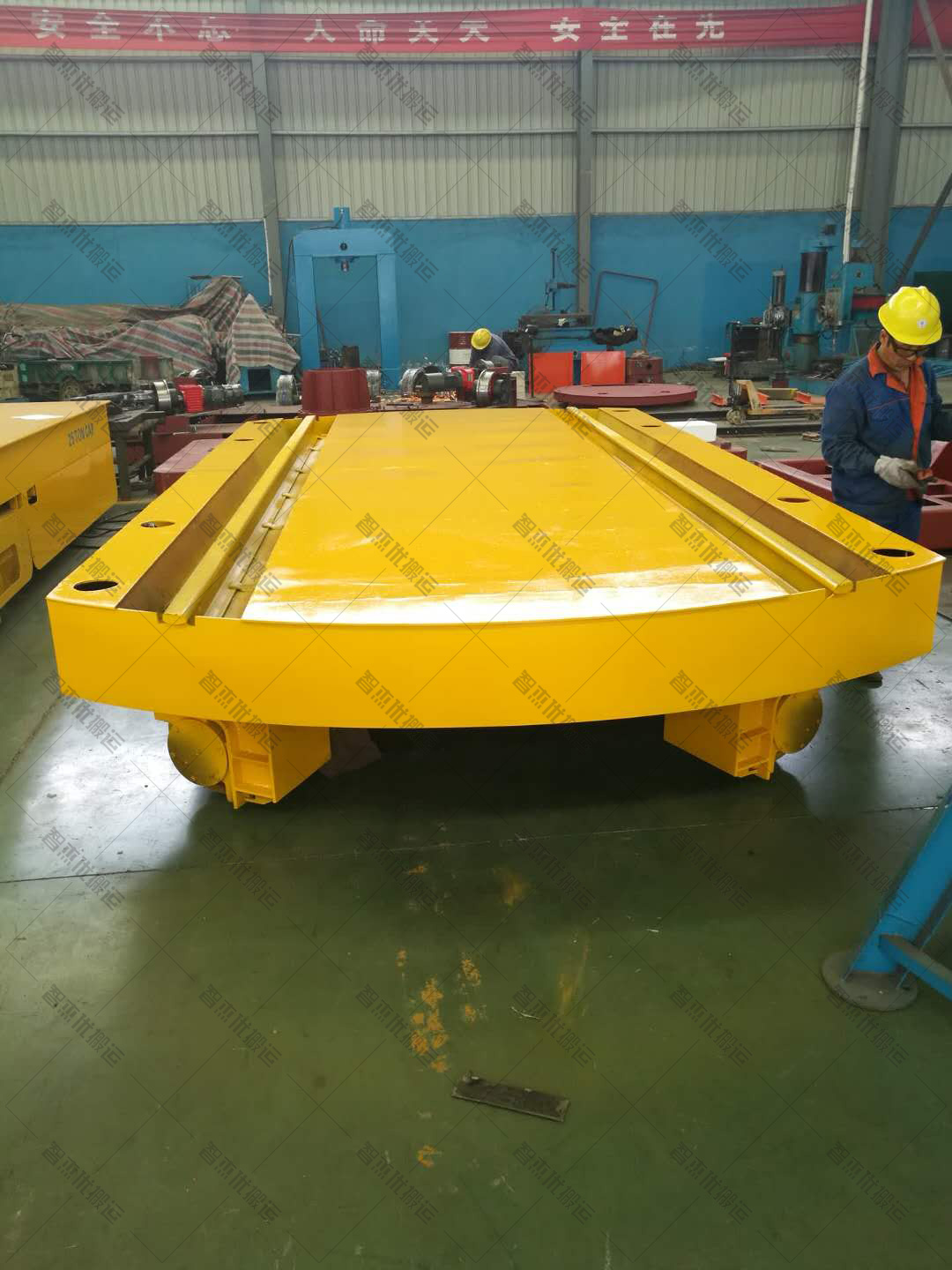 CZP電動轉(zhuǎn)盤為電動平車的配套裝備。當(dāng)車間內(nèi)平面工藝布置需要電動平車做較小角度轉(zhuǎn)彎,其轉(zhuǎn)彎電動平車也不能滿足其要求時(shí),可配置轉(zhuǎn)盤,電動平車在轉(zhuǎn)盤上可做度轉(zhuǎn)向。