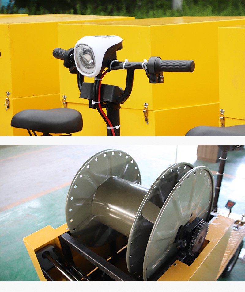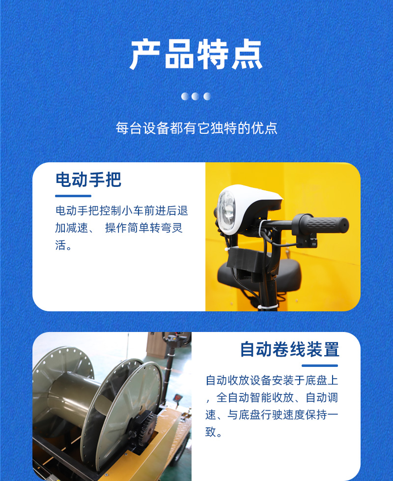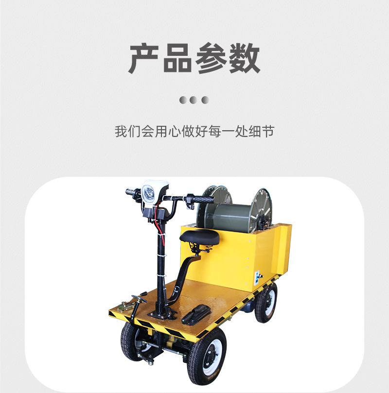 全自動(dòng)收放線(xiàn)無(wú)軌電動(dòng)平板車(chē),整車(chē)長(zhǎng)1.5米寬0.6米高1.2米,四輪越野底盤(pán),充氣橡膠輪胎、電動(dòng)手把操控,蓄電池供電操作簡(jiǎn)單運(yùn)行自由速度可控,橡膠輪胎能滿(mǎn)足顛簸路段、沙地等復(fù)雜路段行駛,小車(chē)后方裝有自動(dòng)收放電纜線(xiàn)卷筒,全自動(dòng)智能收放、自動(dòng)調(diào)速自動(dòng)擺線(xiàn),卷筒速度可與小車(chē)行駛速度保持一致。