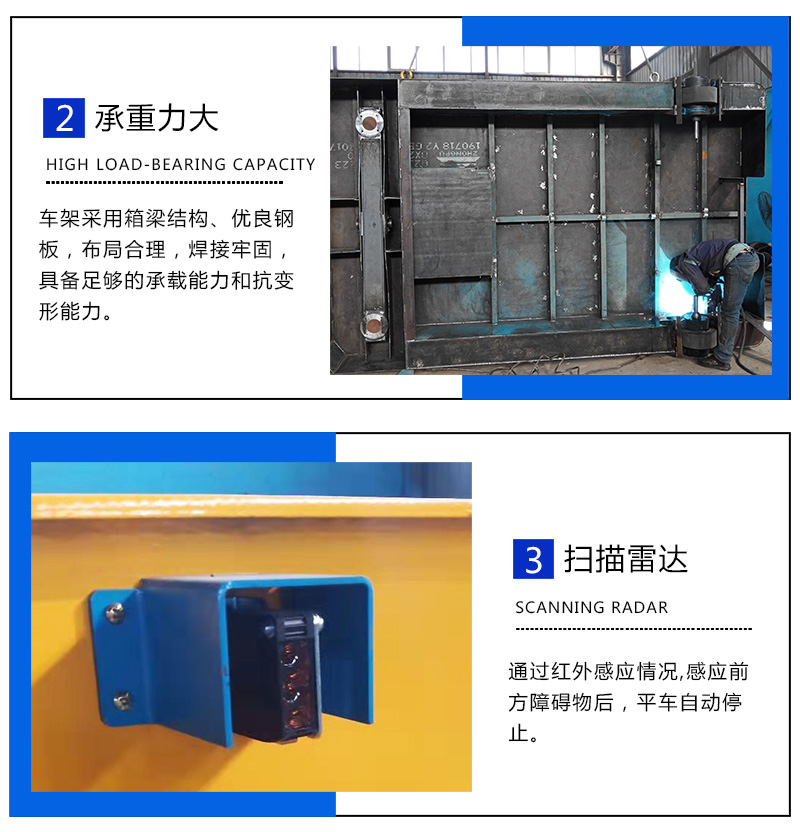公司保障:電動(dòng)平車、軌道平車的承重安全系數(shù)不低于60%