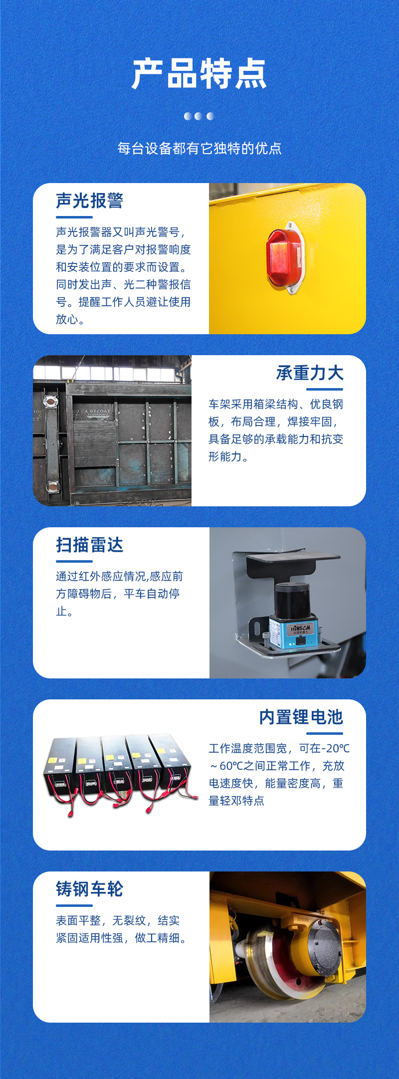 公司保障:電動(dòng)平車、軌道平車的承重安全系數(shù)不低于60%