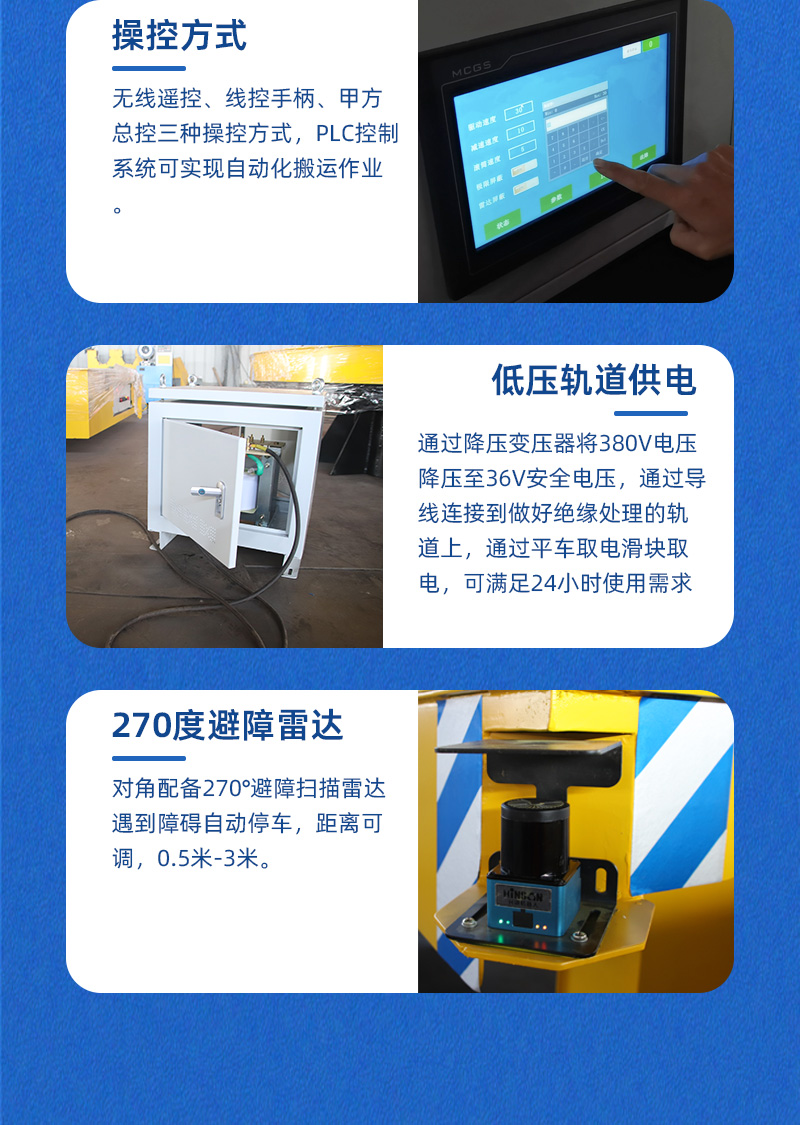 描   述: 自動(dòng)化RGV智能軌道搬運(yùn)車(chē),通過(guò)無(wú)線(xiàn)端口可與上位機(jī)連接通訊遠(yuǎn)程控制作業(yè),rfid傳感器接近開(kāi)關(guān)控制小車(chē)定點(diǎn)???,可設(shè)定站點(diǎn)自動(dòng)進(jìn)行搬運(yùn)作業(yè),臺(tái)面定制輥筒工裝,低壓軌道供電可長(zhǎng)距離頻繁轉(zhuǎn)運(yùn),安全裝置配備齊全,智能軌道車(chē)可安全自動(dòng)進(jìn)行搬運(yùn)作業(yè)!