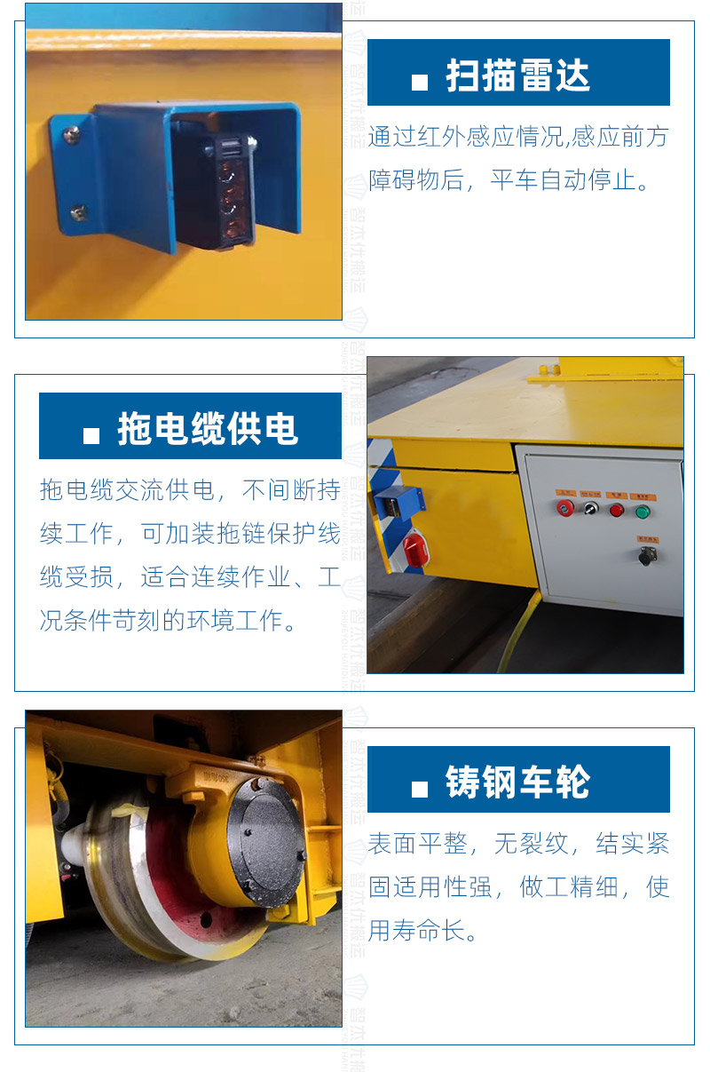 公司保障:電動(dòng)平車、軌道平車的承重安全系數(shù)不低于60%