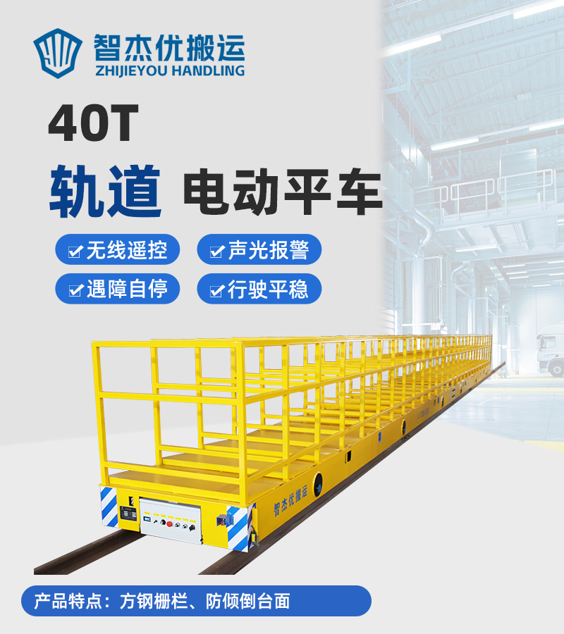 描   述: 該車(chē)長(zhǎng)18米,寬1.2米,高0.35米,車(chē)體可拆分為兩組,車(chē)架箱梁焊接,承重能力強(qiáng)可載重40噸,平臺(tái)上方設(shè)有單獨(dú)工位,每個(gè)工位載重1.5噸,方鋼柵欄方便物料擺放,臺(tái)面坡度設(shè)計(jì)防止貨物傾斜滑落,大扭矩減速機(jī)電機(jī)驅(qū)動(dòng),配有6組主動(dòng)輪,驅(qū)動(dòng)力大,啟動(dòng)力足,啟停平穩(wěn),電磁制動(dòng),性能突出,響應(yīng)靈敏,無(wú)線遙控平車(chē)前進(jìn)后退、加減速,設(shè)有限位傳感器到達(dá)地點(diǎn)自動(dòng)停車(chē),前后光電感應(yīng)遇障自停,聲光報(bào)警保障安全。