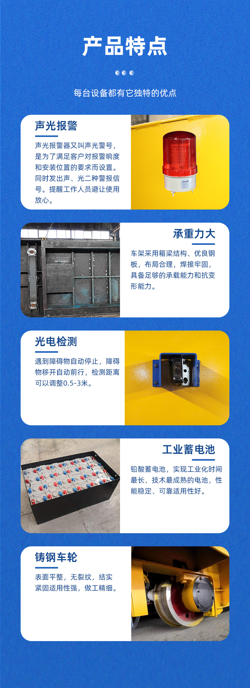 這是一臺(tái)轉(zhuǎn)彎軌道平車試機(jī)現(xiàn)場(chǎng),整車長(zhǎng)寬1.2米 高0.45米,載重2噸。平車小巧靈活,運(yùn)行在轉(zhuǎn)彎軌道上,無(wú)線遙控平車前進(jìn)后退,蓄電池供電節(jié)能環(huán)保,配備8個(gè)鑄鋼車輪硬度高耐磨防滑,加裝導(dǎo)向輪及回轉(zhuǎn)支撐,確保彎道行駛運(yùn)行流暢平穩(wěn)、防止掉道,平車內(nèi)側(cè)前后設(shè)有限位開(kāi)關(guān),可設(shè)置多點(diǎn)位自動(dòng)???,方便用戶定點(diǎn)搬運(yùn)作業(yè),安全裝置上平車具備欠壓、過(guò)壓、過(guò)流、超載、短路、低電量等防護(hù),前后配備光電檢測(cè),遇障自停,聲光報(bào)警提醒避讓!