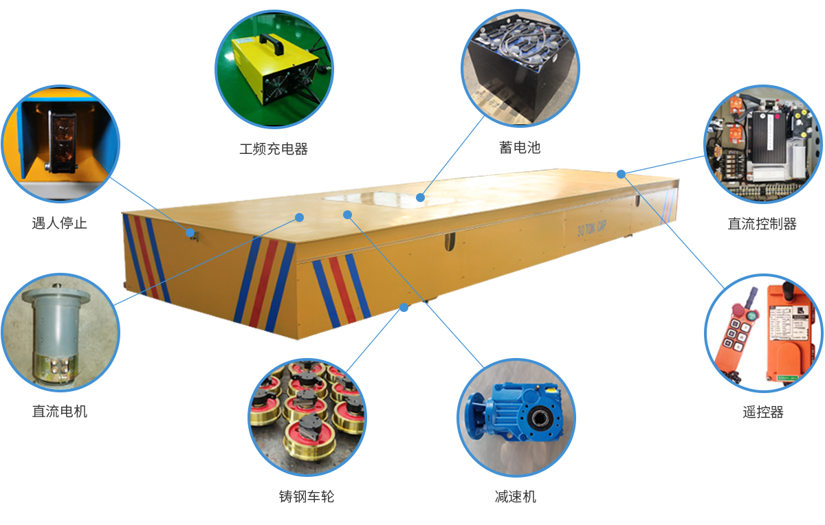 CXG系列是蓄電池供電的電動平車,是由蓄電池提供電源的轉(zhuǎn)運(yùn)車,蓄電池安裝在車體內(nèi)部,電源通過電器控制系統(tǒng),給直流牽引電機(jī)提供電力,使轉(zhuǎn)運(yùn)車平穩(wěn)啟動、停止、前進(jìn)、后退、調(diào)速等。該系列電動平車能夠在垂直的軌道、L型軌道、S型軌道、弧形軌道及易爆、擺渡場合使用;平車上可以加裝液壓升降系統(tǒng),平車直流電機(jī)啟動平車、啟動力大、對減速機(jī)沖擊力小、電壓低、使用壽命長等優(yōu)點(diǎn)。相對于其他電動平車來說,其運(yùn)行距離不受限,軌道鋪設(shè)要求也不高,適用于各種運(yùn)輸場合。但蓄電池需要定期維護(hù)。由于蓄電池容量有限,其使用時間受限。