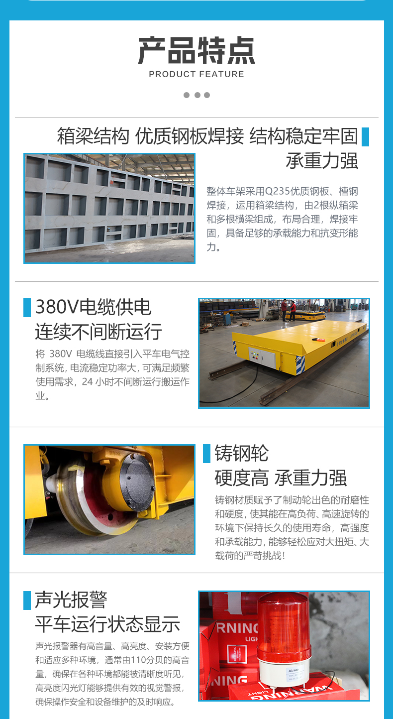公司保障:電動(dòng)平車、軌道平車的承重安全系數(shù)不低于60%